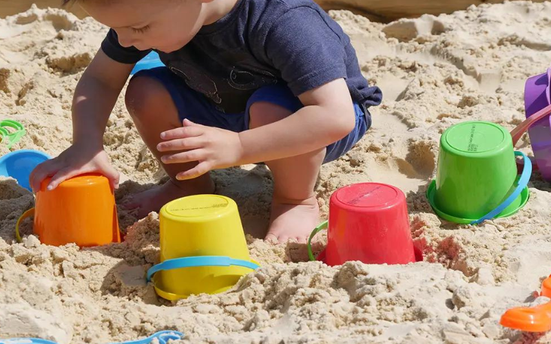 A sandpit is a designated area filled with sand where children can play and build various structures using shovels, buckets, and molds. It provides an engaging sensory experience and encourages imaginative play.